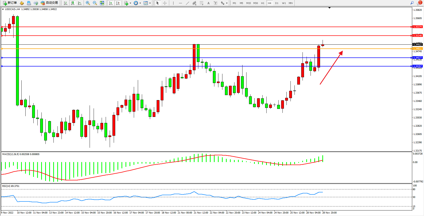 美元兑加元维持1.34922附近震荡,由于能源价格下降以及借贷成本上升的情况下海外支付上升,加拿大经常帐大幅下滑跌成赤字。加拿大统计局的数据显示,第三季度加拿大经常帐赤字为111亿加元,远大于市场预期的40亿加元。当经常帐为赤字时,一般会对本国货币造成拖累。