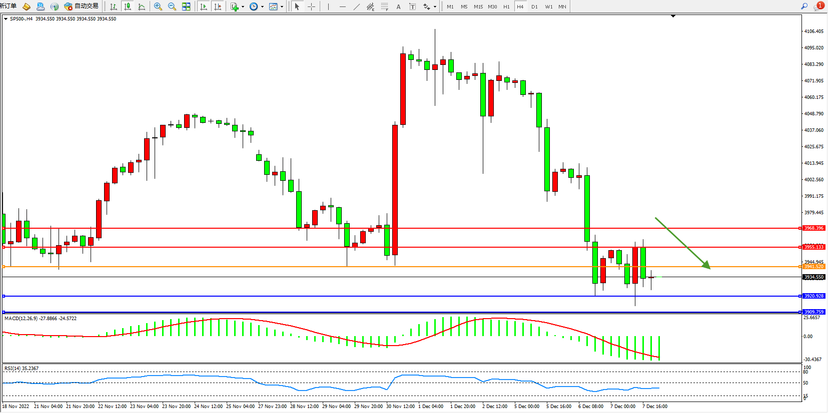 标普SP500——4小时K线图显示: