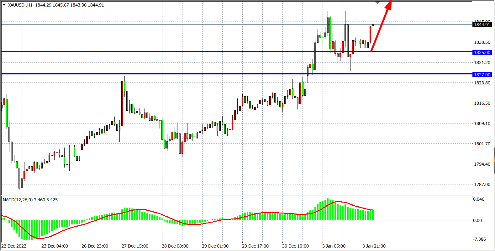 交易策略:在1827.00 之上看涨,目标1850.00         1878.00