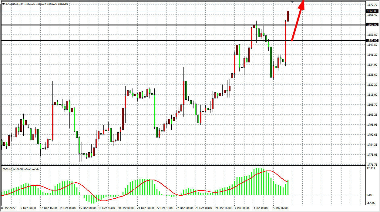 交易策略:在1850.00 之上看涨,目标1878.00         1900.00