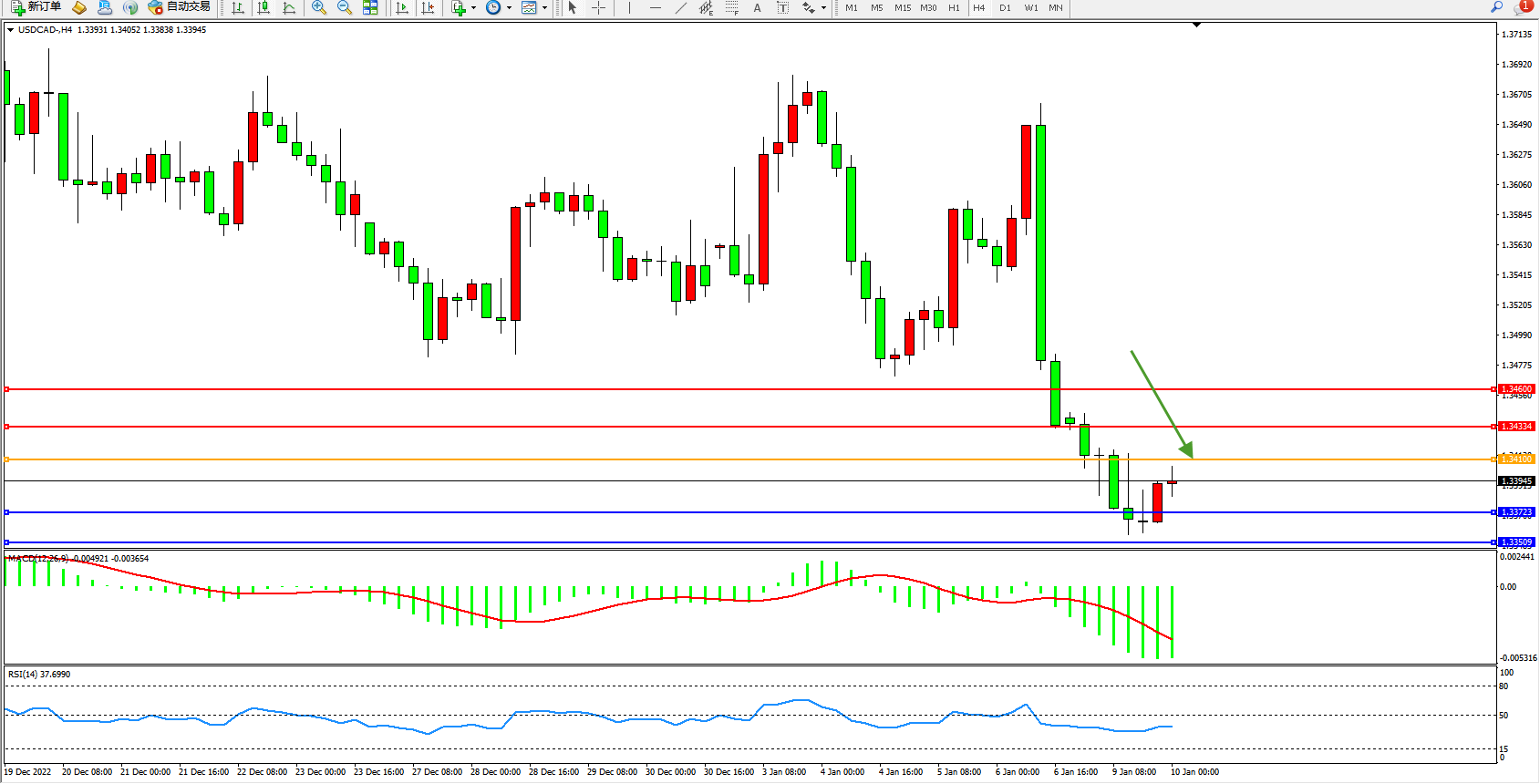 交易策略:1.34100下方看跌,目标1.33723、1.33509