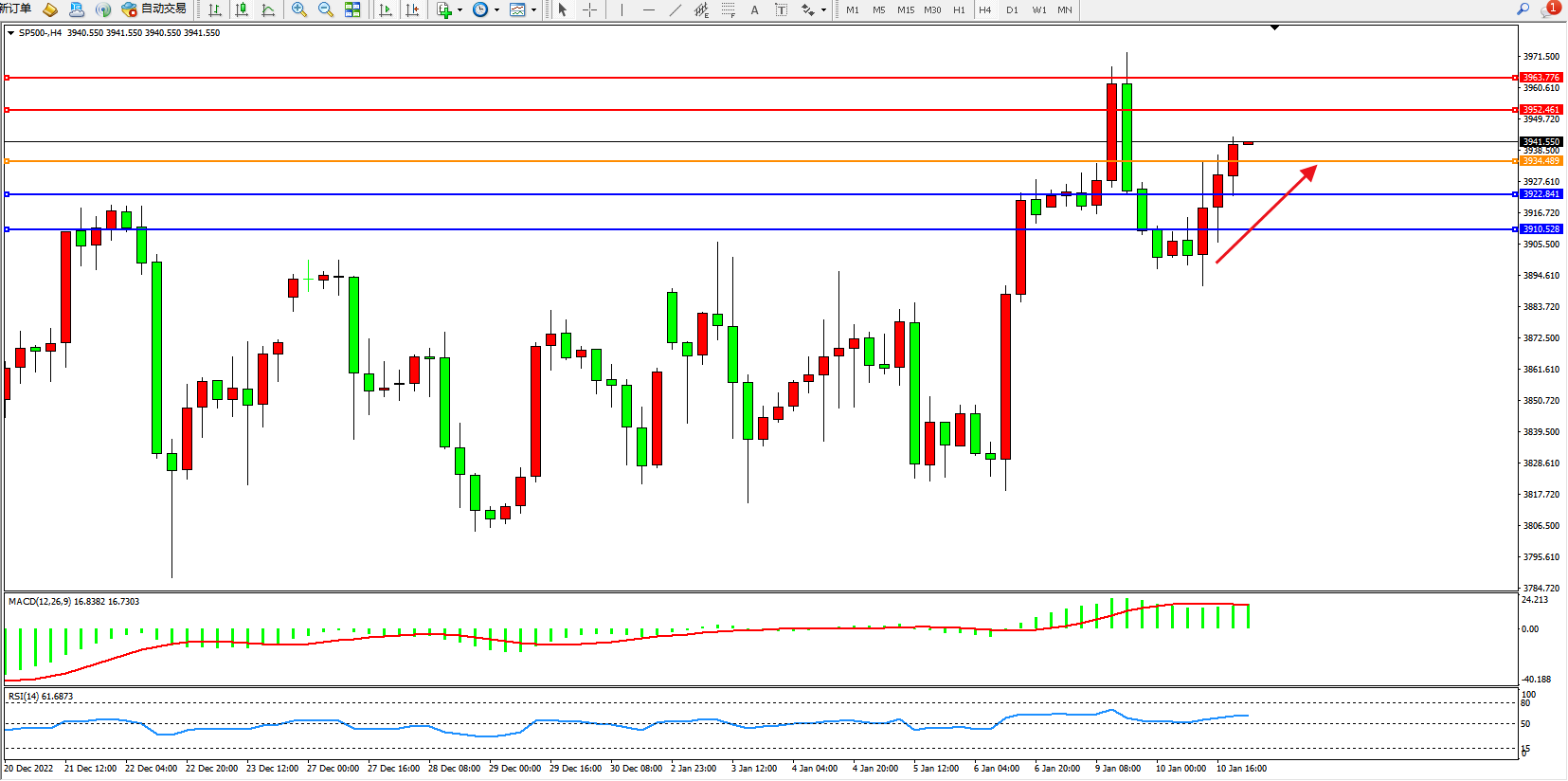 标普SP500——4小时K线图显示: