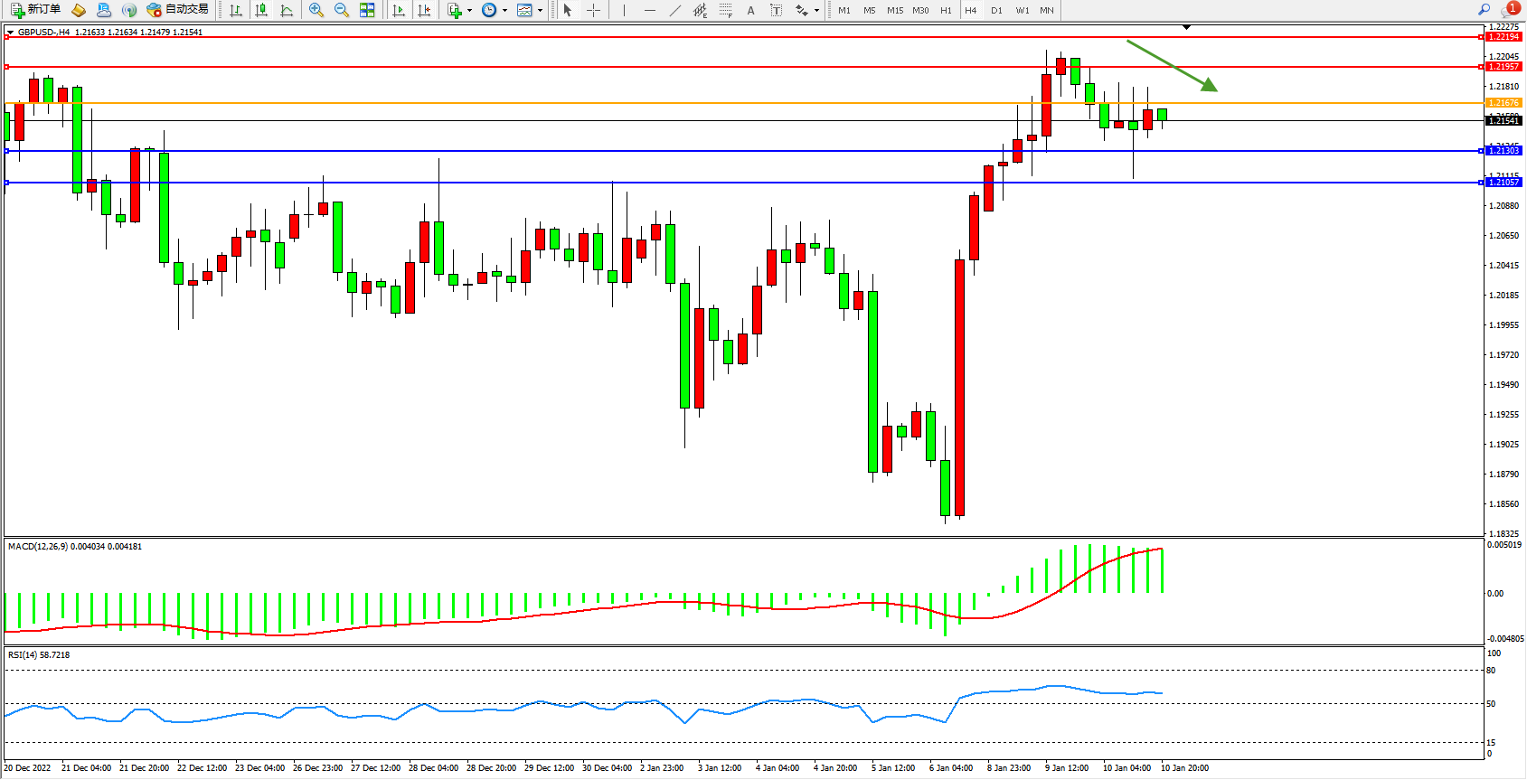英镑美元GBPUSD ——4小时K线图显示: