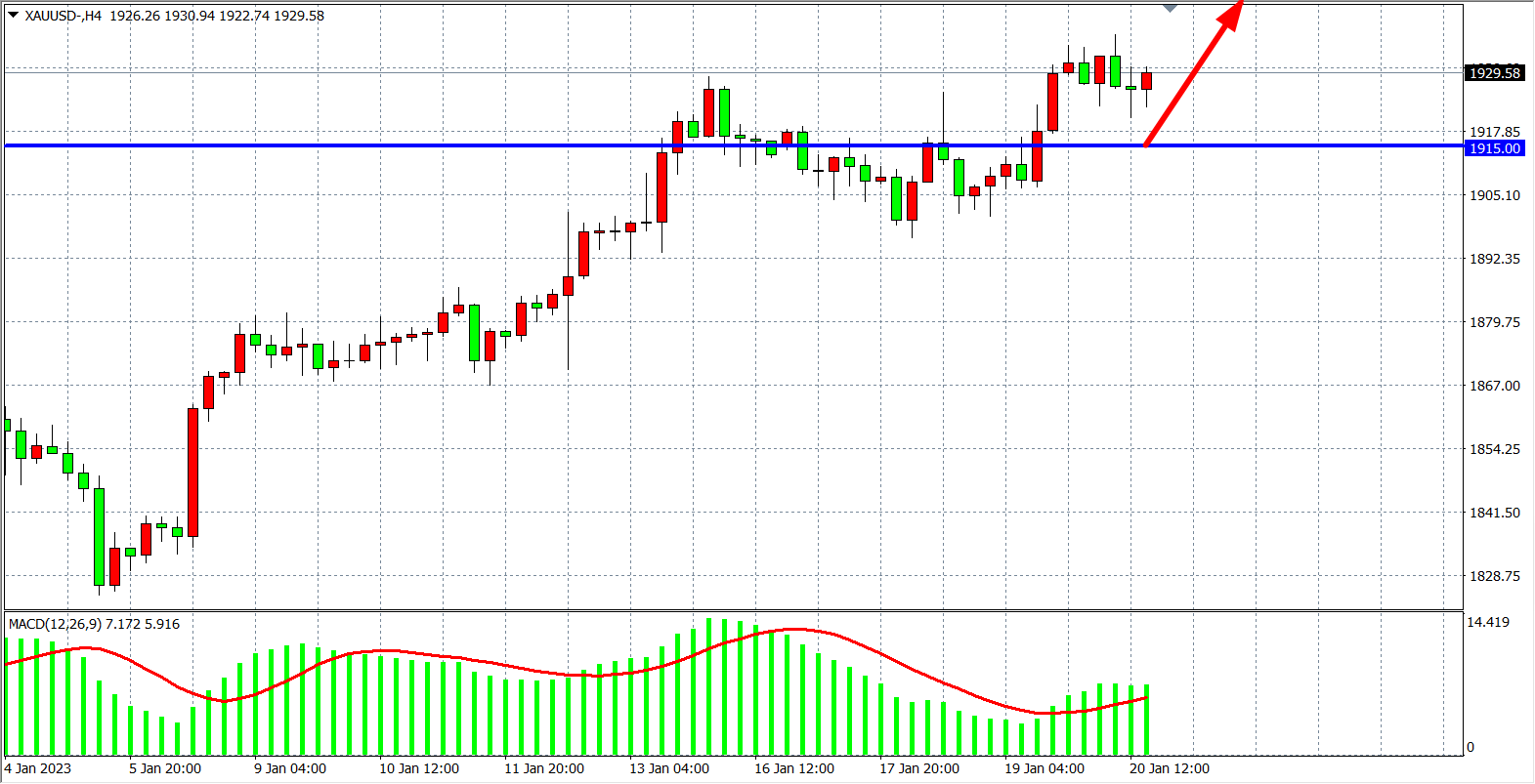 4小时图看,金价在1900之上继续走强,MACD量能在零轴之上量能开始重新释放,显示行情有进一步走高的空间,当前支撑关注1915附近,在1915之上继续看涨,目标1940-1950附近。