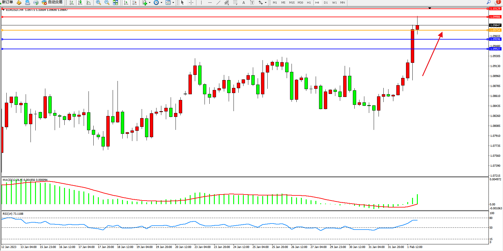 交易策略:1.09754上方看涨,目标1.09986、1.10129