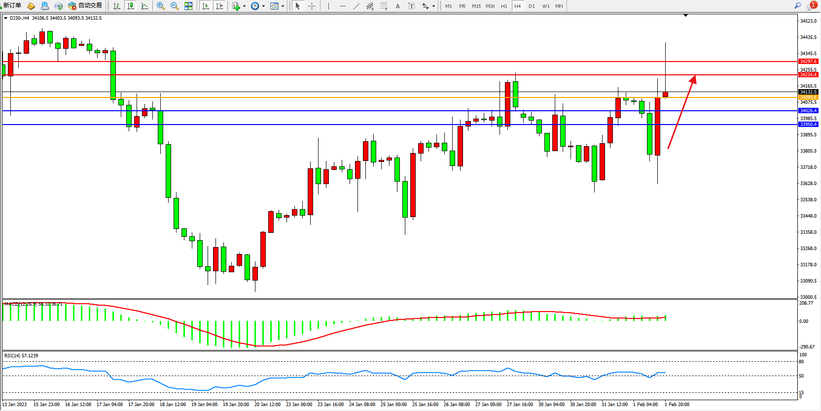 道琼斯指数2月1日(周三)收盘上涨8.30点,涨幅0.02%,报34094.34点;美国1月ADP就业人数 10.6万人,预期17.8万人,前值23.5万人。为2021年1月以来最小增幅。