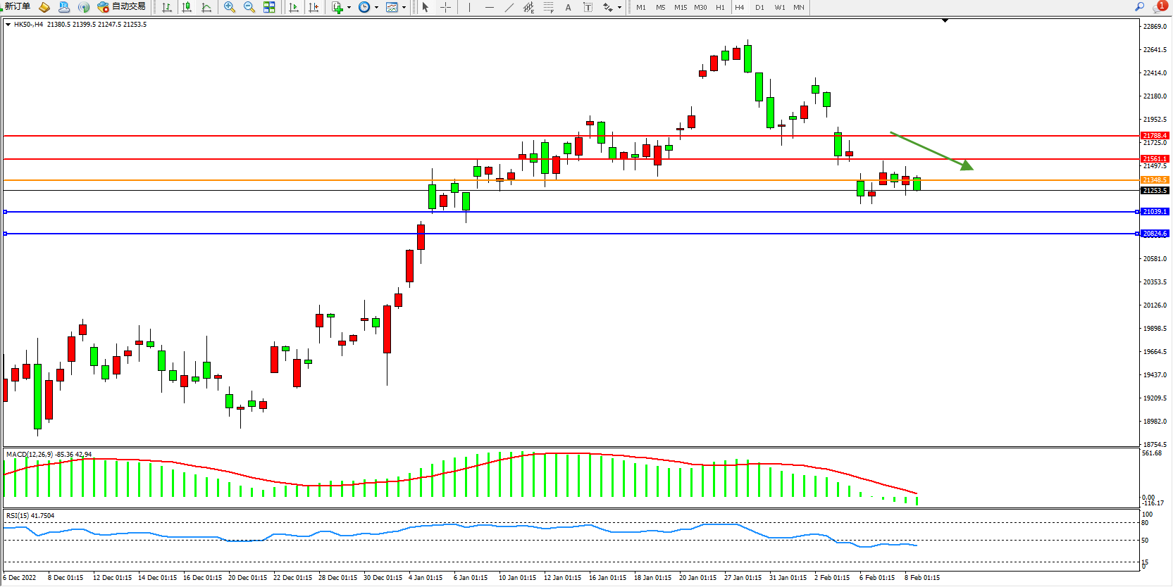 恒指HK50 4小时图