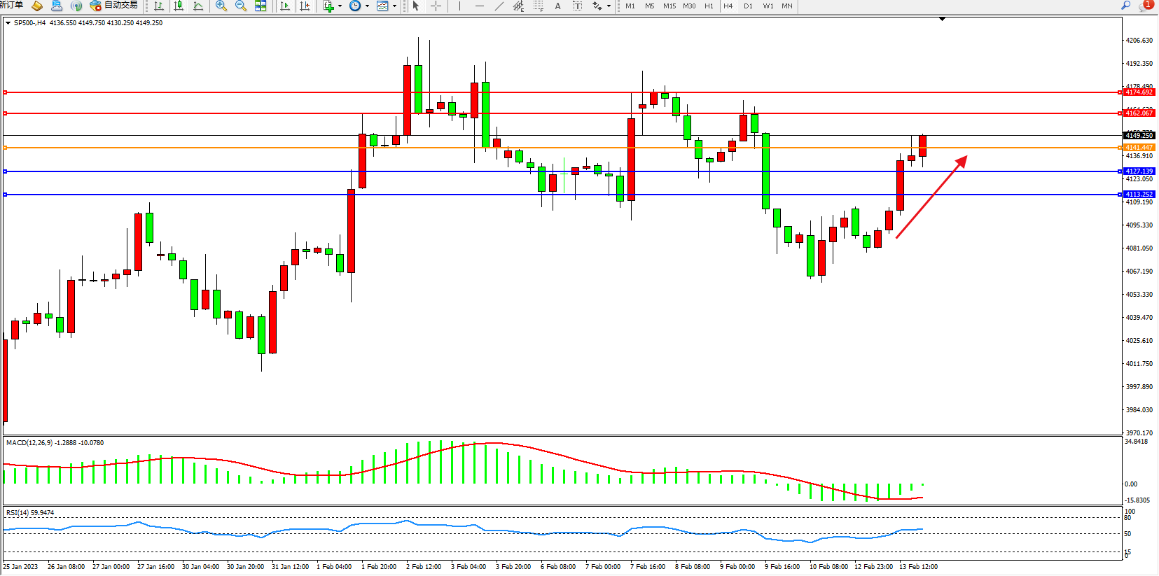 标普SP500——4小时K线图显示: