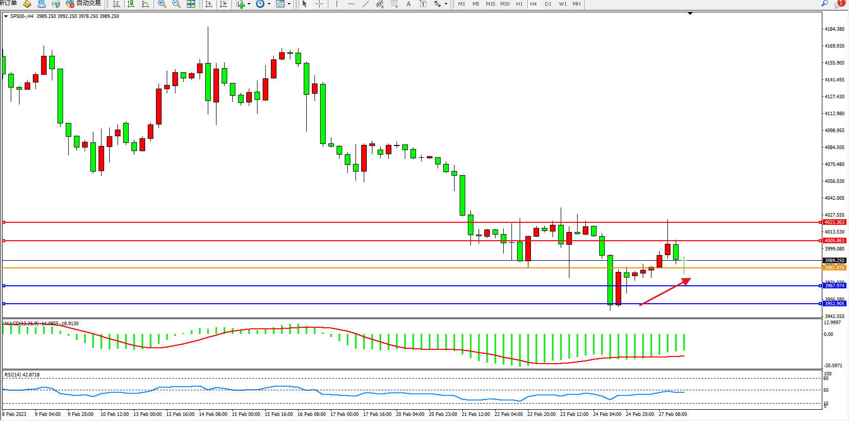 标普SP500——4小时K线图显示: