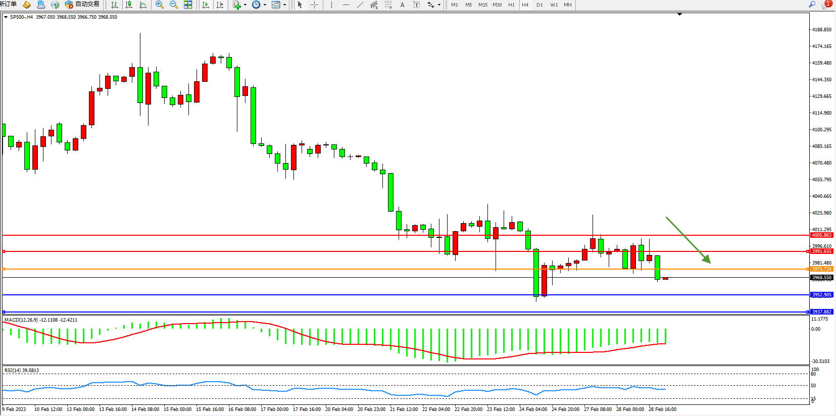 标普SP500——4小时K线图显示: