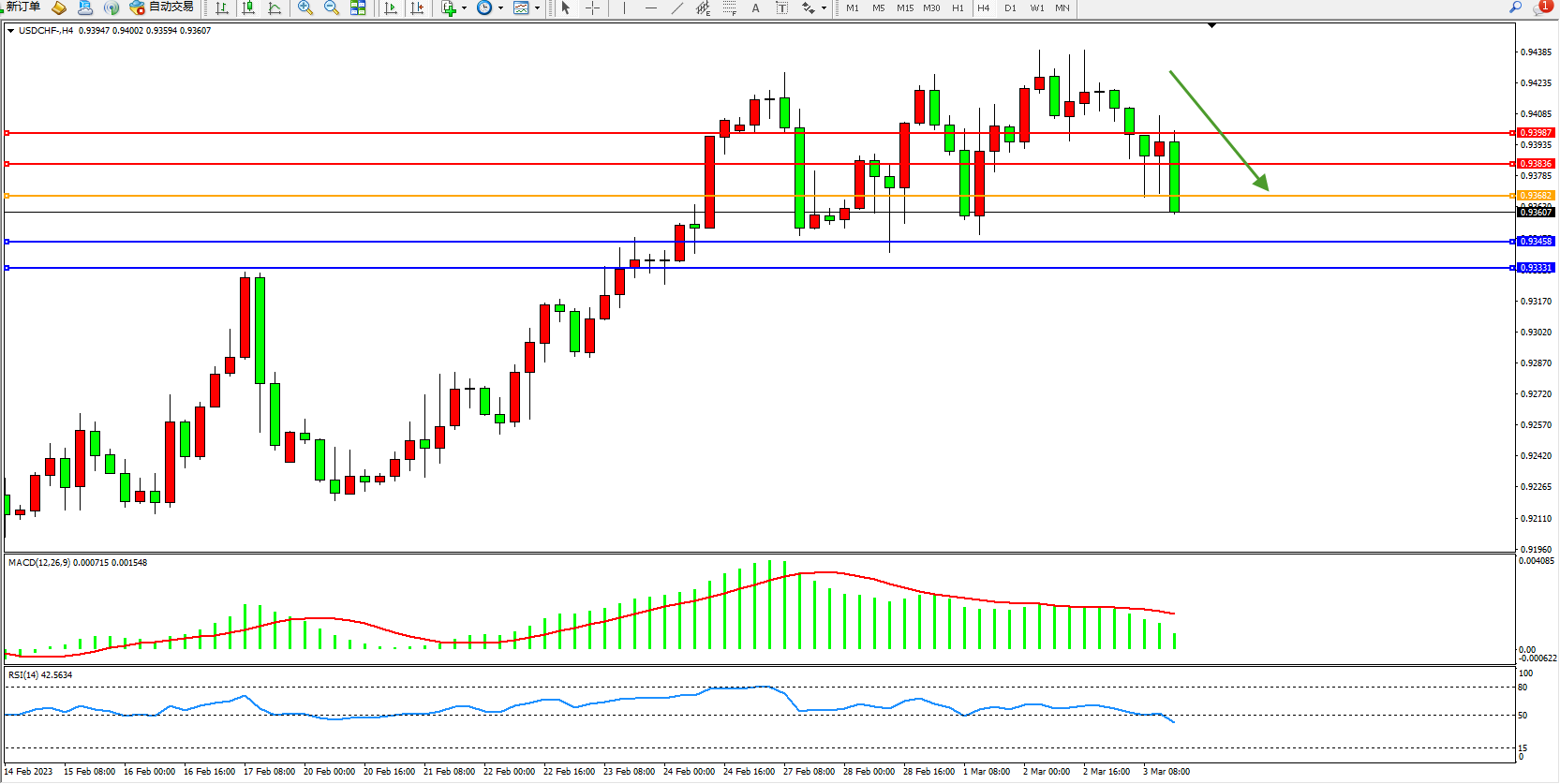 美元瑞郎USDCHF——4小时K线图显示: