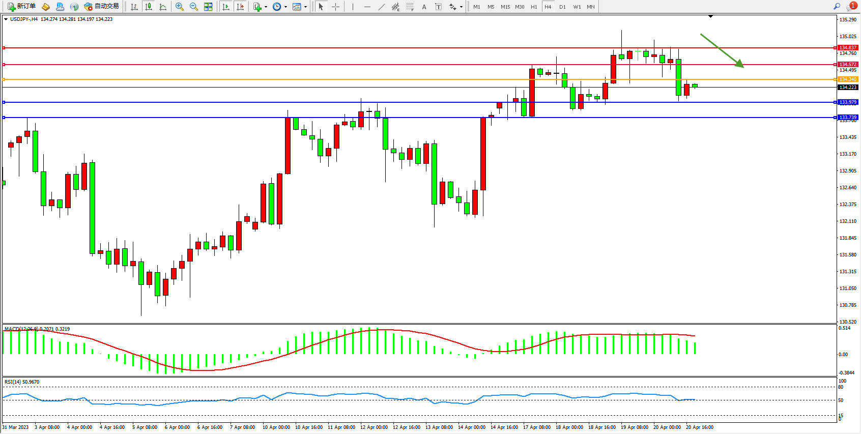 美元兑日圆维持134.223附近震荡,由于燃料价格回落和进口成本下降,日本3月的贸易逆差连续第二个月缩小。日本贸易逆差从2月份修正后的8981亿日缩减至7545亿日。进口同比增长7.3%,为两年来的最小增幅,因日走强和石油等大宗商品价格下跌压低了进口成本。