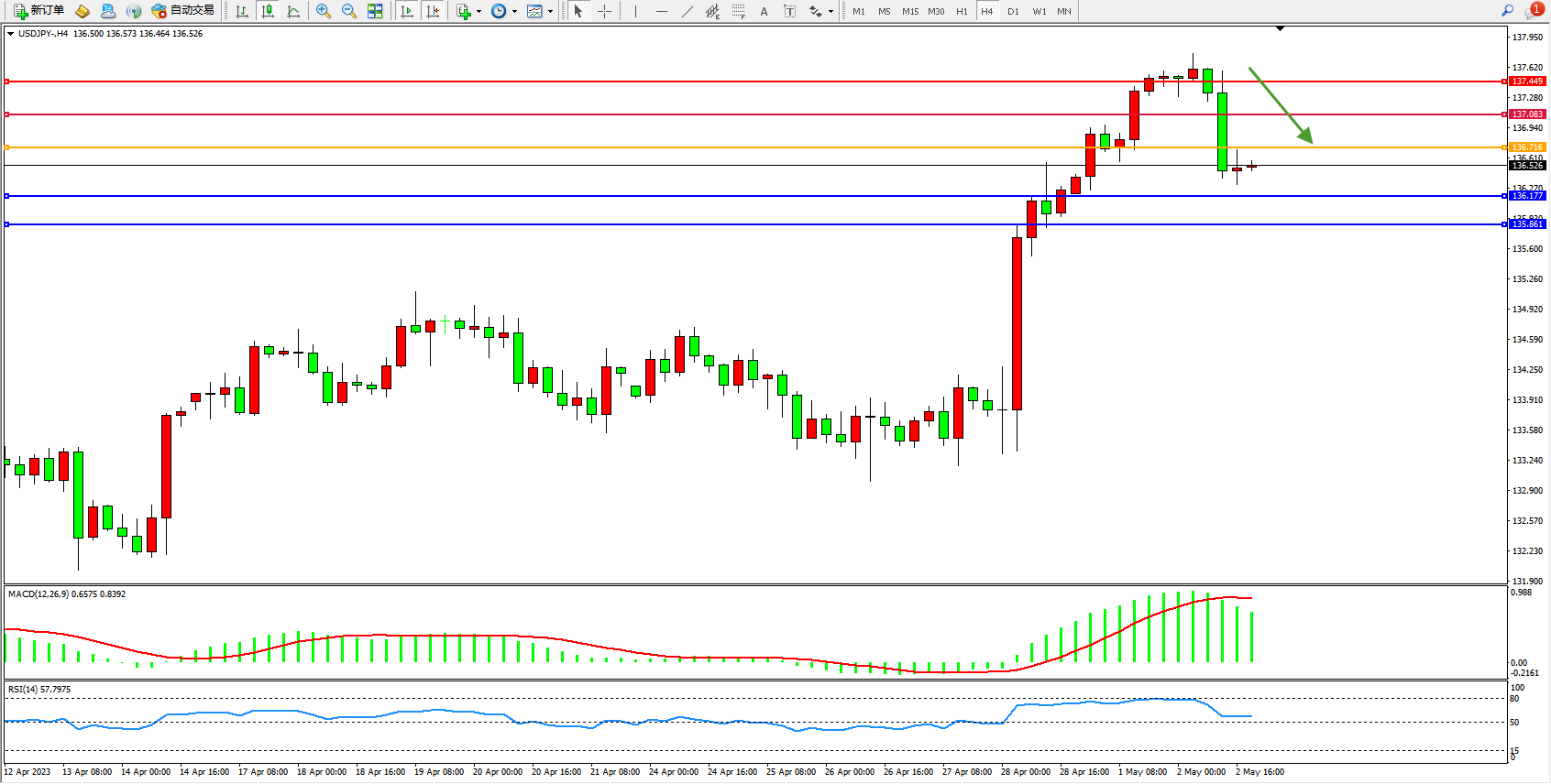 交易策略:136.716下方看跌,目标136.177  135.861