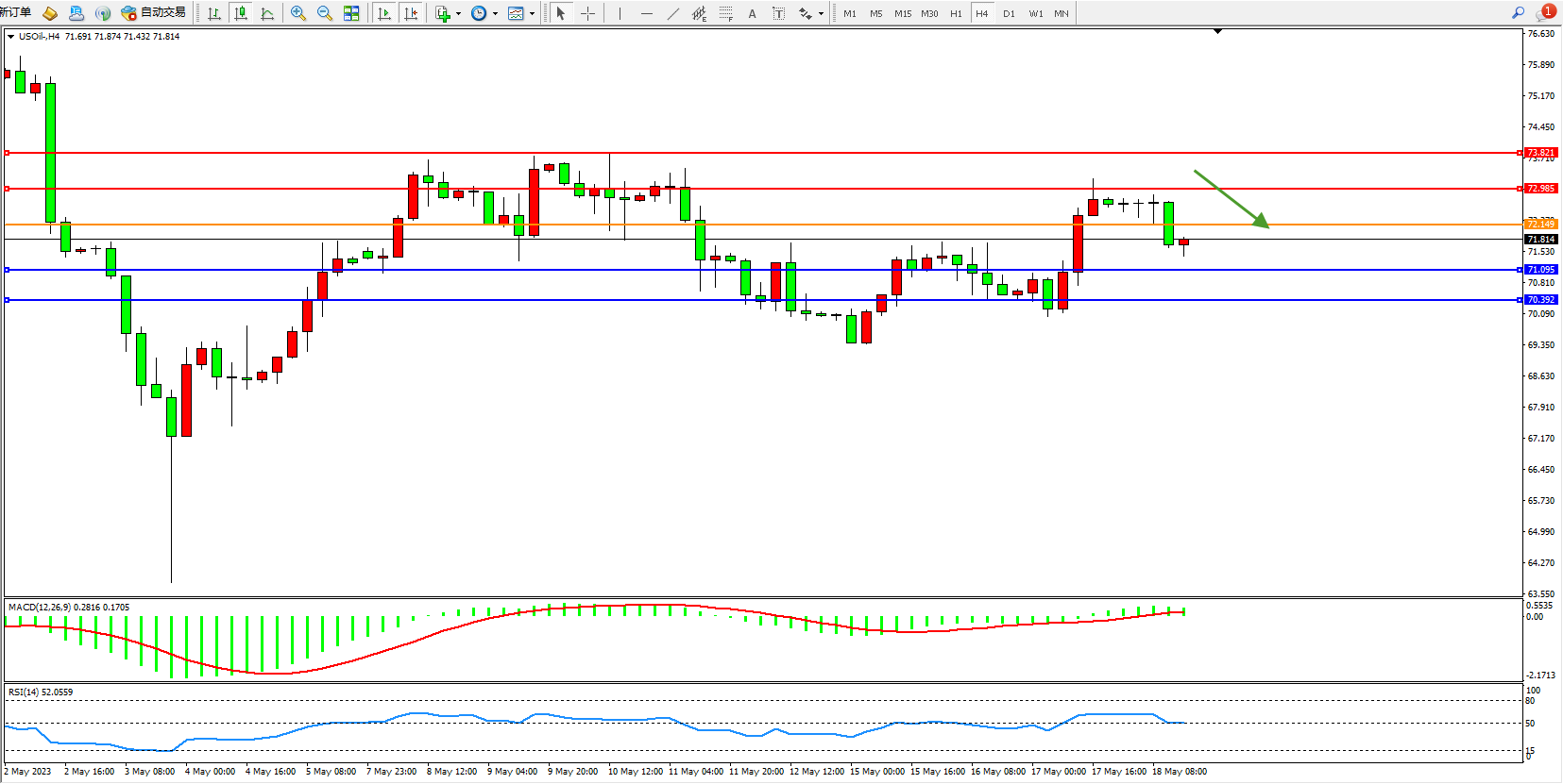 4小时图看:空头动力短期整理后下移,短期跌势或将延续,市场空头情绪逐渐涌现,MACD指标处于0轴线上側弱势整理,RSI指标处于50均衡线附近弱势徘徊;