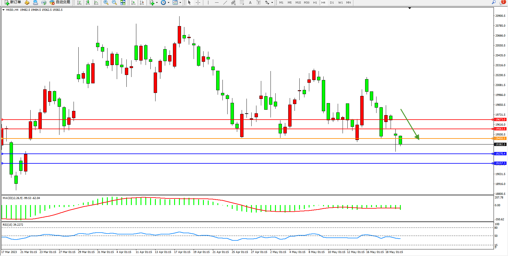 恒指HK50 4小时图