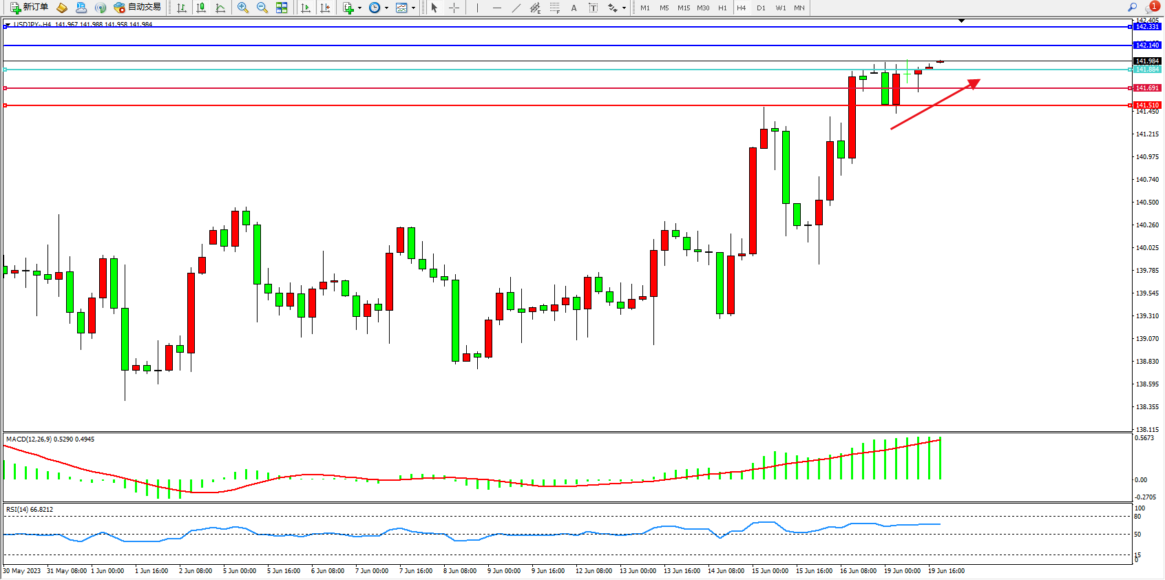 交易策略:141.894上方看涨,目标142.140 142.331