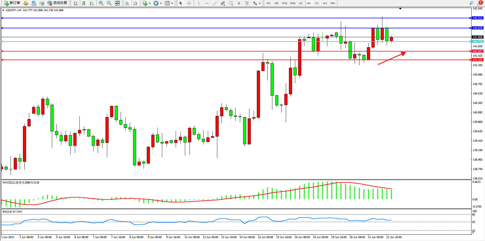 阻力位:142.076  142.313