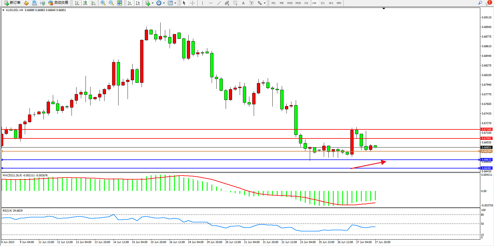 阻力位:0.67002 0.67160