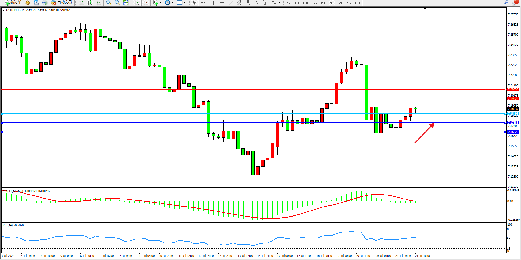 备选策略:7.18495下方看跌,目标7.17686  7.16822