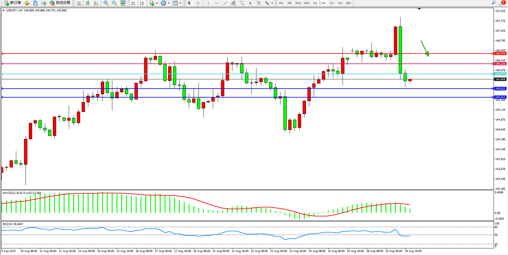 阻力位:146.226 146.474