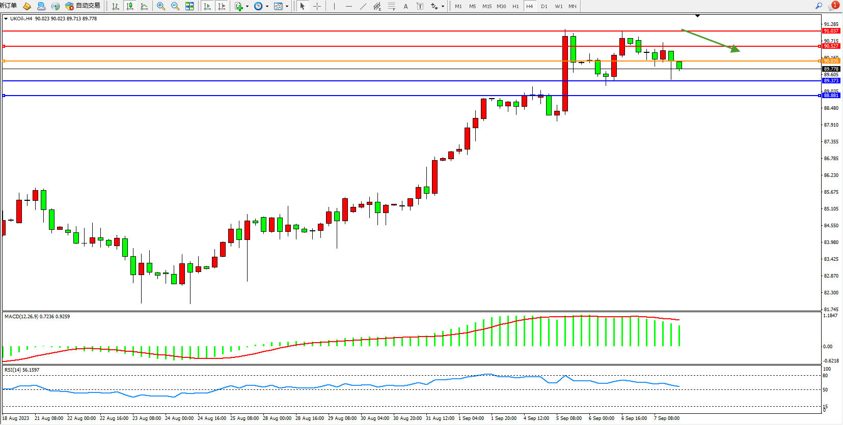 交易策略:90.035下方看跌,目标89.373  88.881