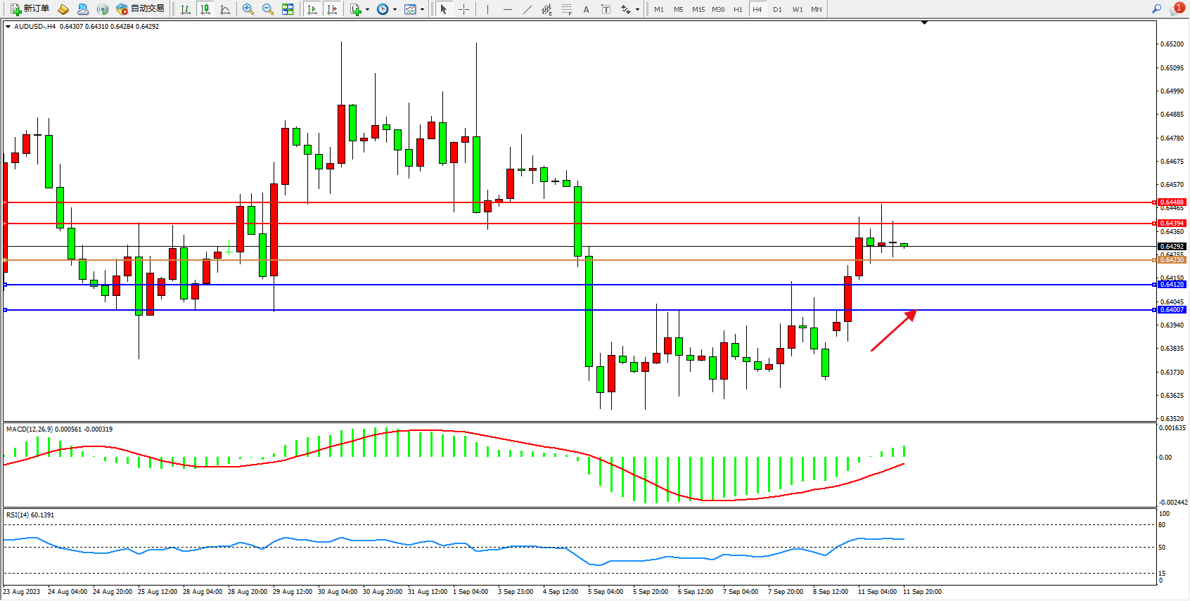 阻力位:0.64394 0.64488