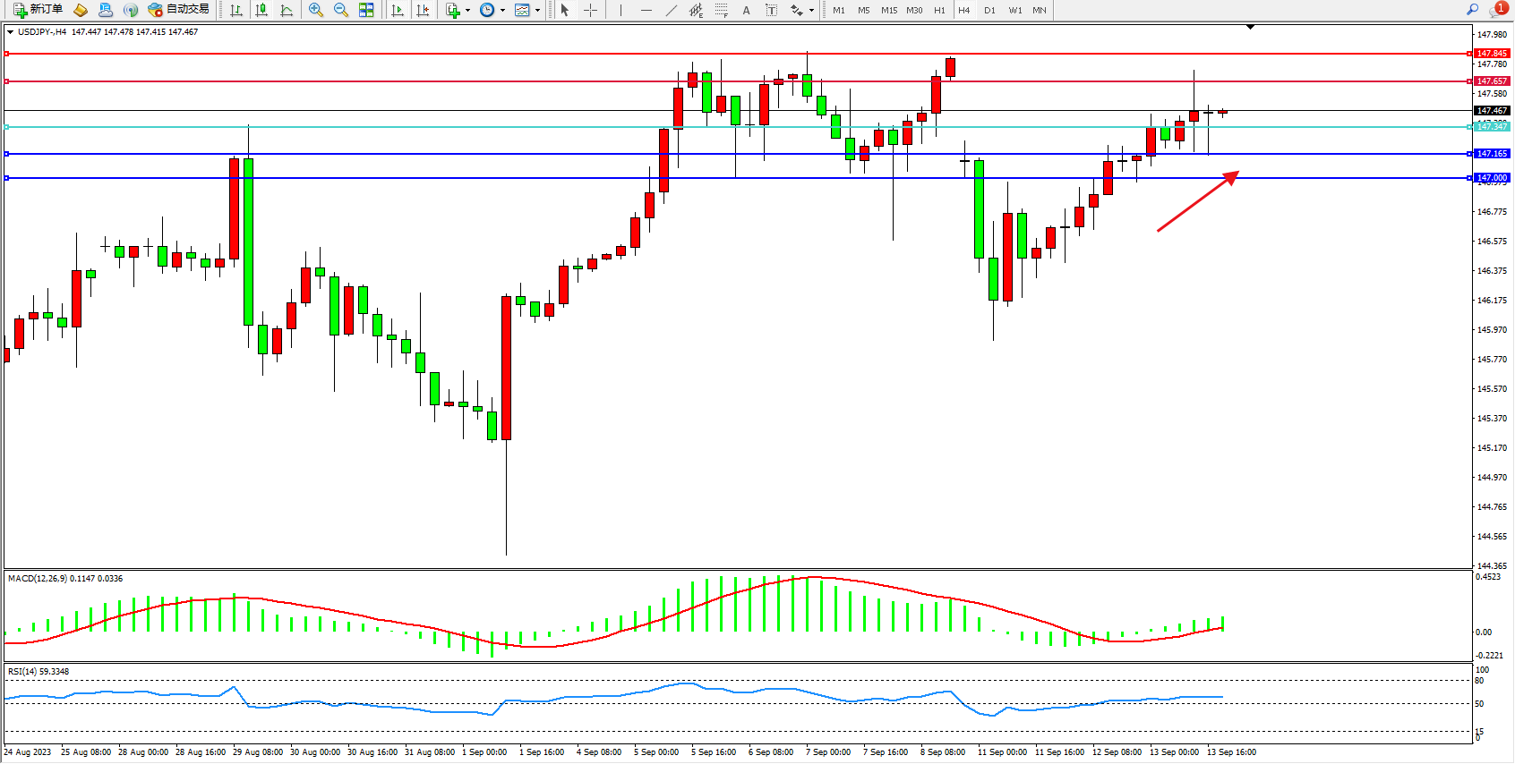 阻力位:147.657 147.845