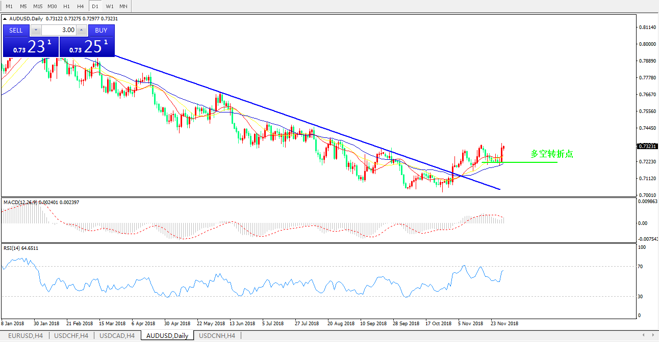 交易策略:在0.7218之上,看涨,目标价位为 0.7350,然后为0.7385。