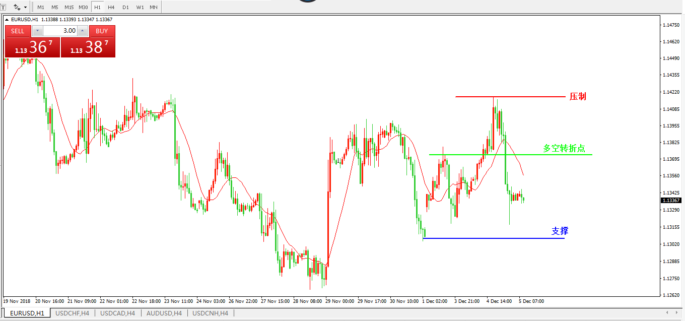 欧元兑美元EURUSD  1小时图: