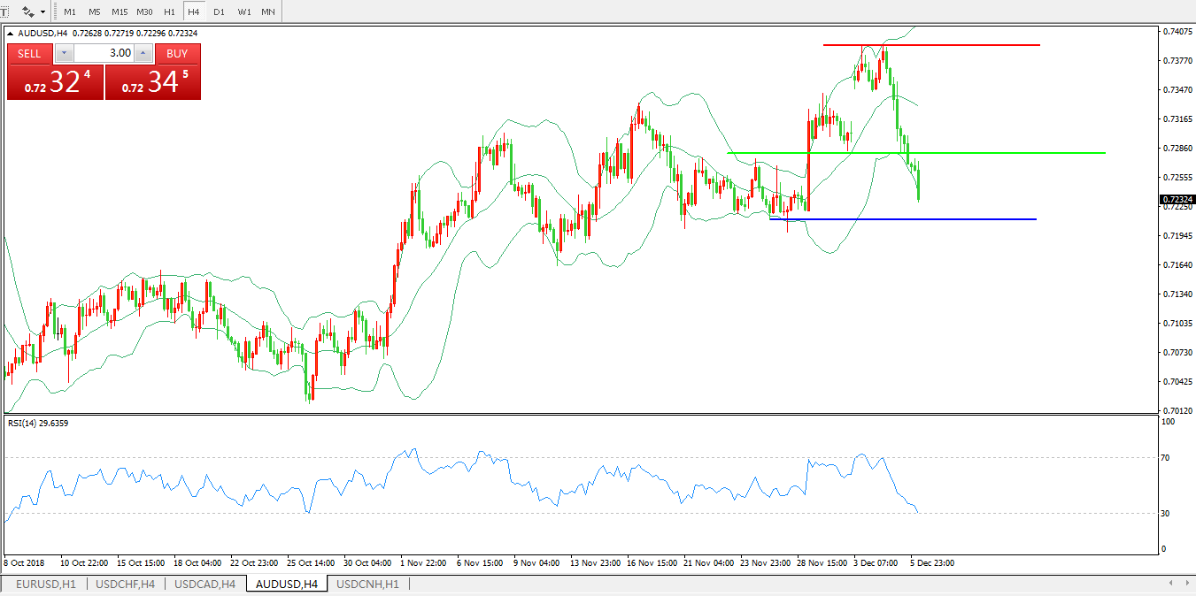 交易策略:在0.7282之下,看跌,目标价位为0.7218,然后为0.7161