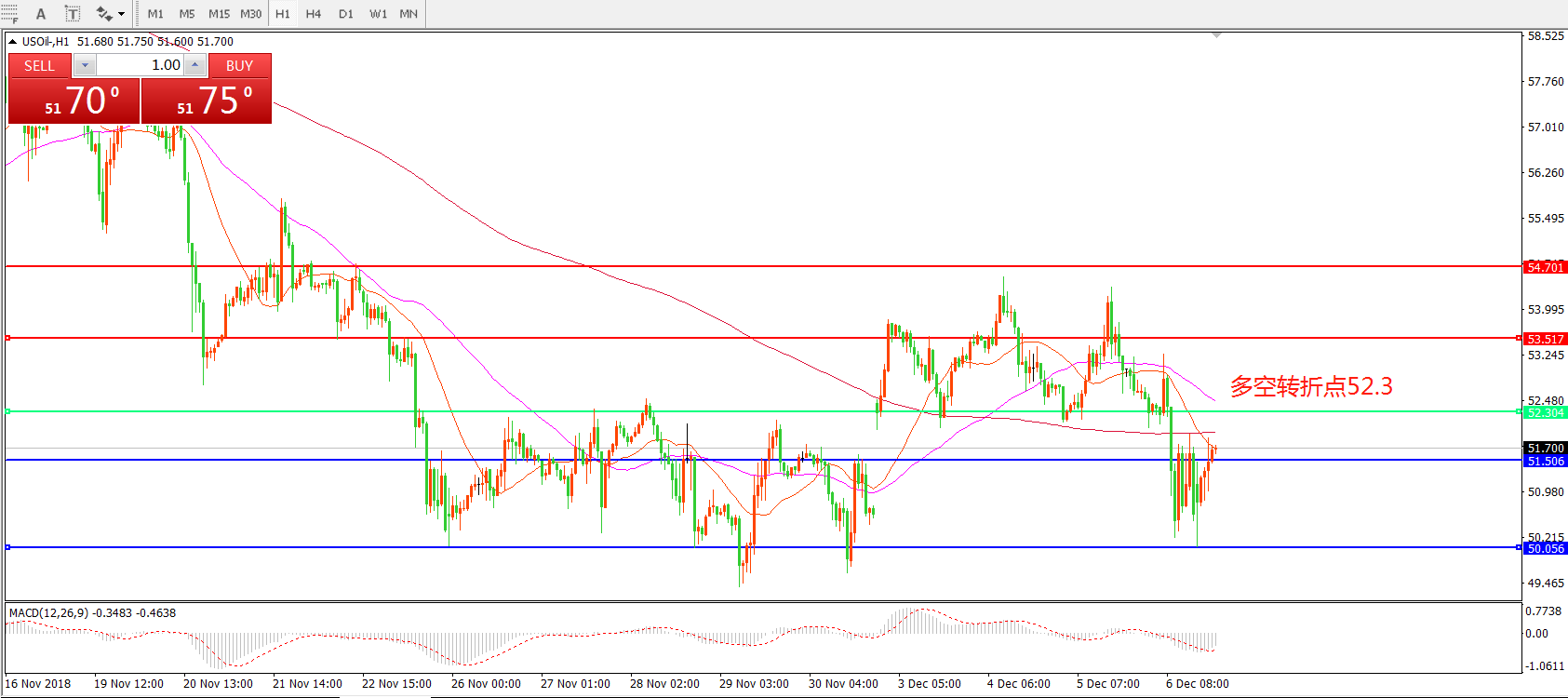 交易策略:在52.3之下看跌,目标51.50 50.00