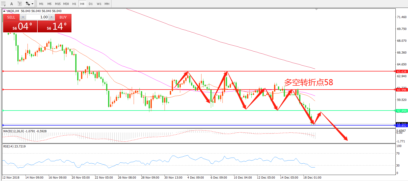交易策略:在58.00之下看跌,目标55.00 53.00
