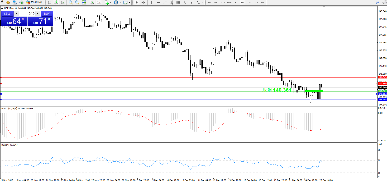 备选策略:140.361下方看跌,目标140.192、139.798