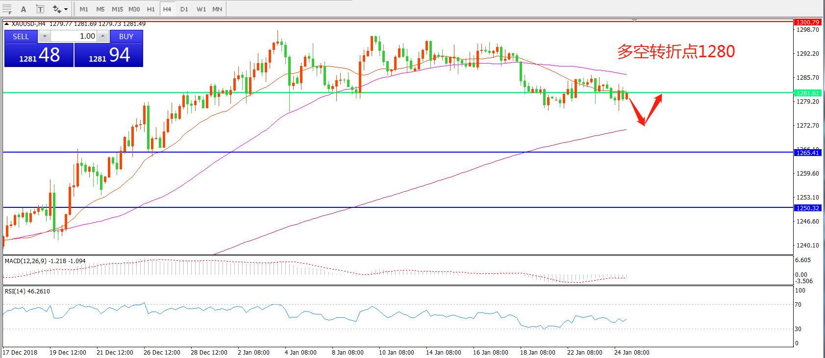 多空转折点:1280.00