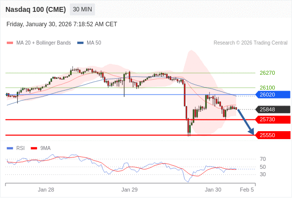 在 26020 之下,看跌,目标价位为 25730 ,然后为 25550 。