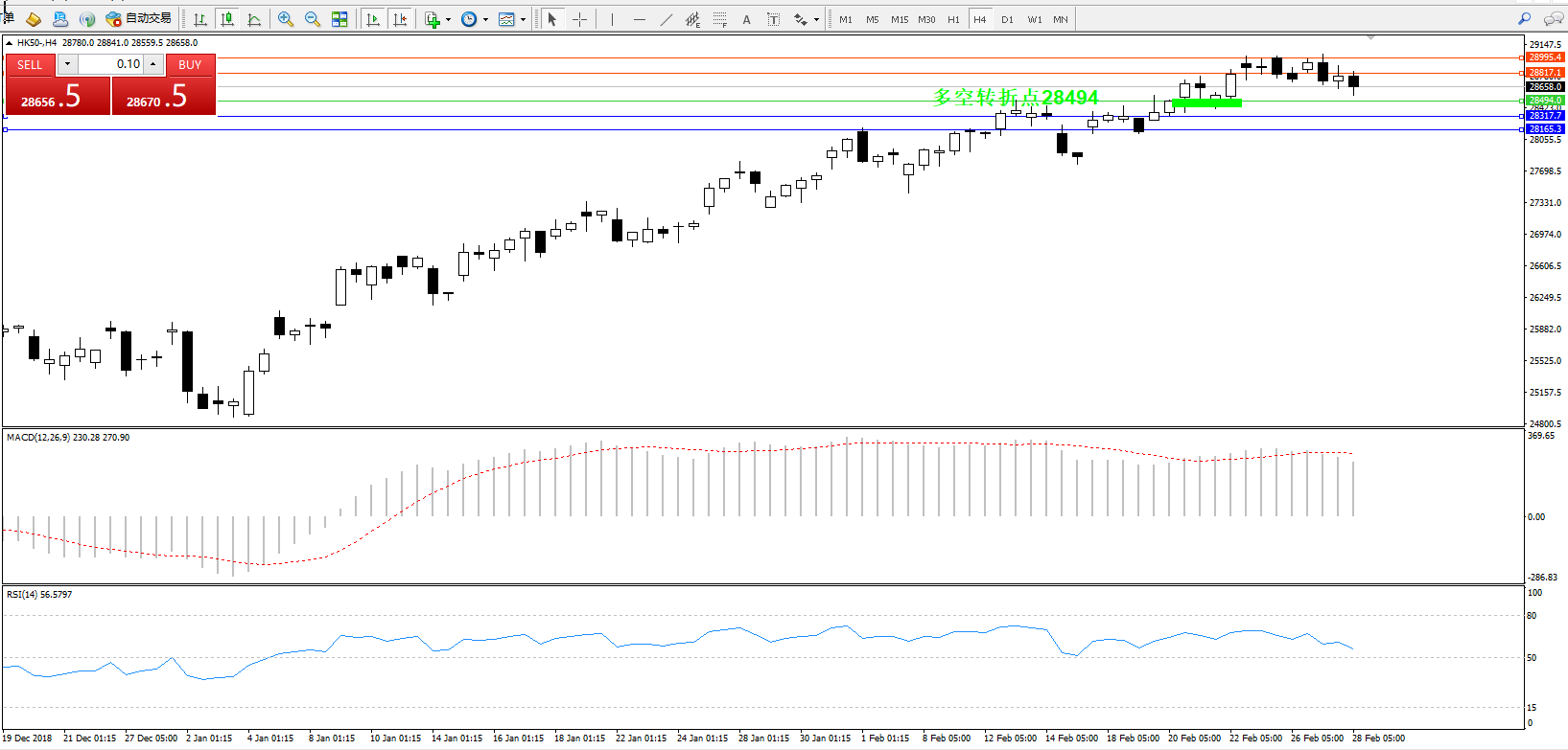 亚洲股市多数收跌,沪深两市维持震荡格局,收盘涨跌互现,香港恒生指数冲高回落,午后转跌,截至收盘跌0.43%,报28633.18点,中国国家统计局服务业调查中心高级统计师赵庆河对中国2PMI解读时指出,新出口订单指数和进口指数均持续位于临界点以下,在全球增长势头减弱和贸易保护主义加剧的影响下,对外贸易压力较大。