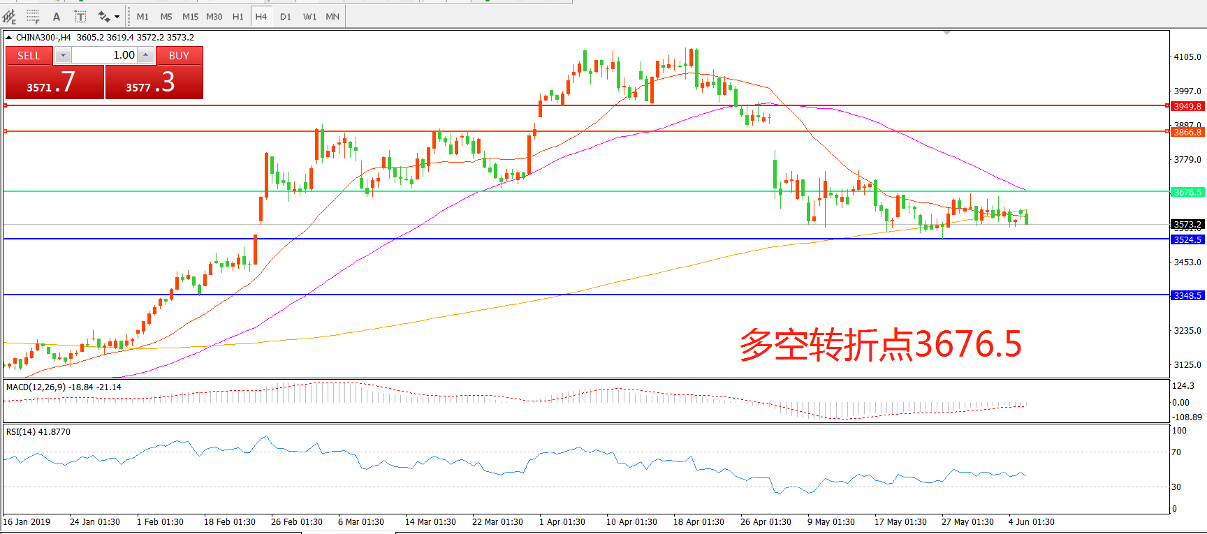 沪深300指数CHINA300 4小时图
