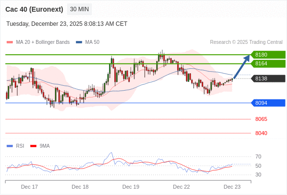 在 8094 之上,看涨,目标价位为 8164 ,然后为 8180 。