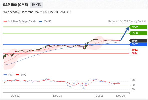 在 6937 之上,看涨,目标价位为 6990 ,然后为 7020 。