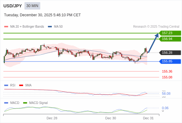 美元/日元 当日内 : 看涨,当 155.85 为支撑位。