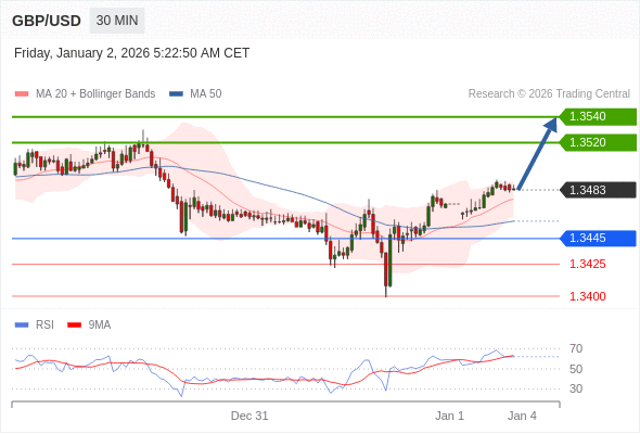 在 1.3445 之上,看涨,目标价位为 1.3520 ,然后为 1.3540 。