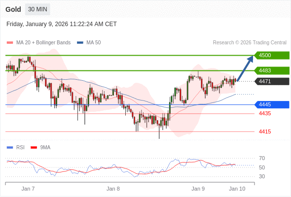 交易策略: 在 4445 之上,看涨,目标价位为 4483 ,然后为 4500 。