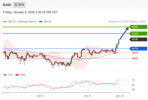 在 4478 之上,看涨,目标价位为 4528 ,然后为 4550 。
