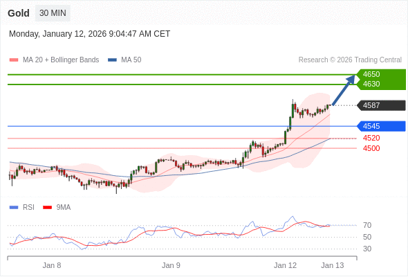 在 4545 之上,看涨,目标价位为 4630 ,然后为 4650 。