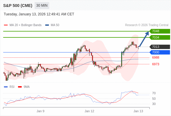 在 7000 之上,看涨,目标价位为 7034 ,然后为 7048 。
