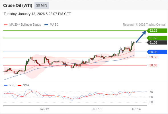 在 60.05 之上,看涨,目标价位为 61.50 ,然后为 62.25 。