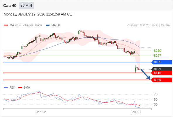 在 8185 之下,看跌,目标价位为 8115 ,然后为 8069 。