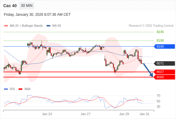 Cac 40 当日内: 存在压力。