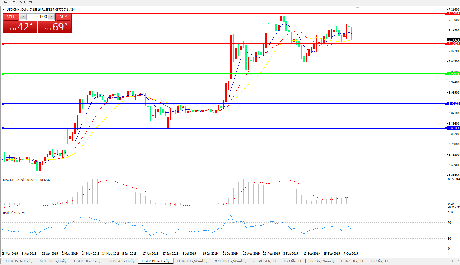 交易策略: 在7.0000之上,看涨,目标价位为7.1000,然后为7.2000。