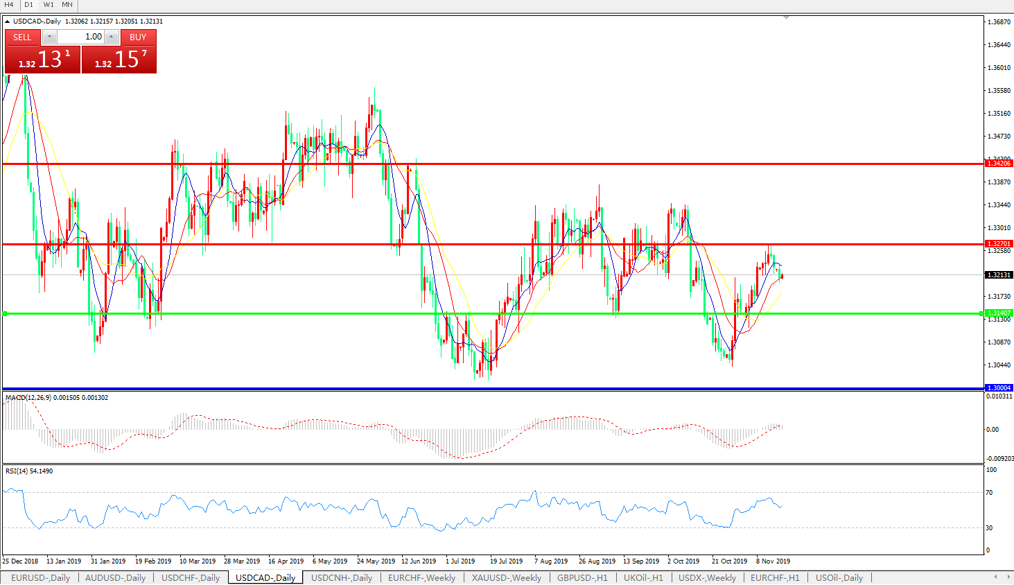 美元兑加元USDCAD 日线图: